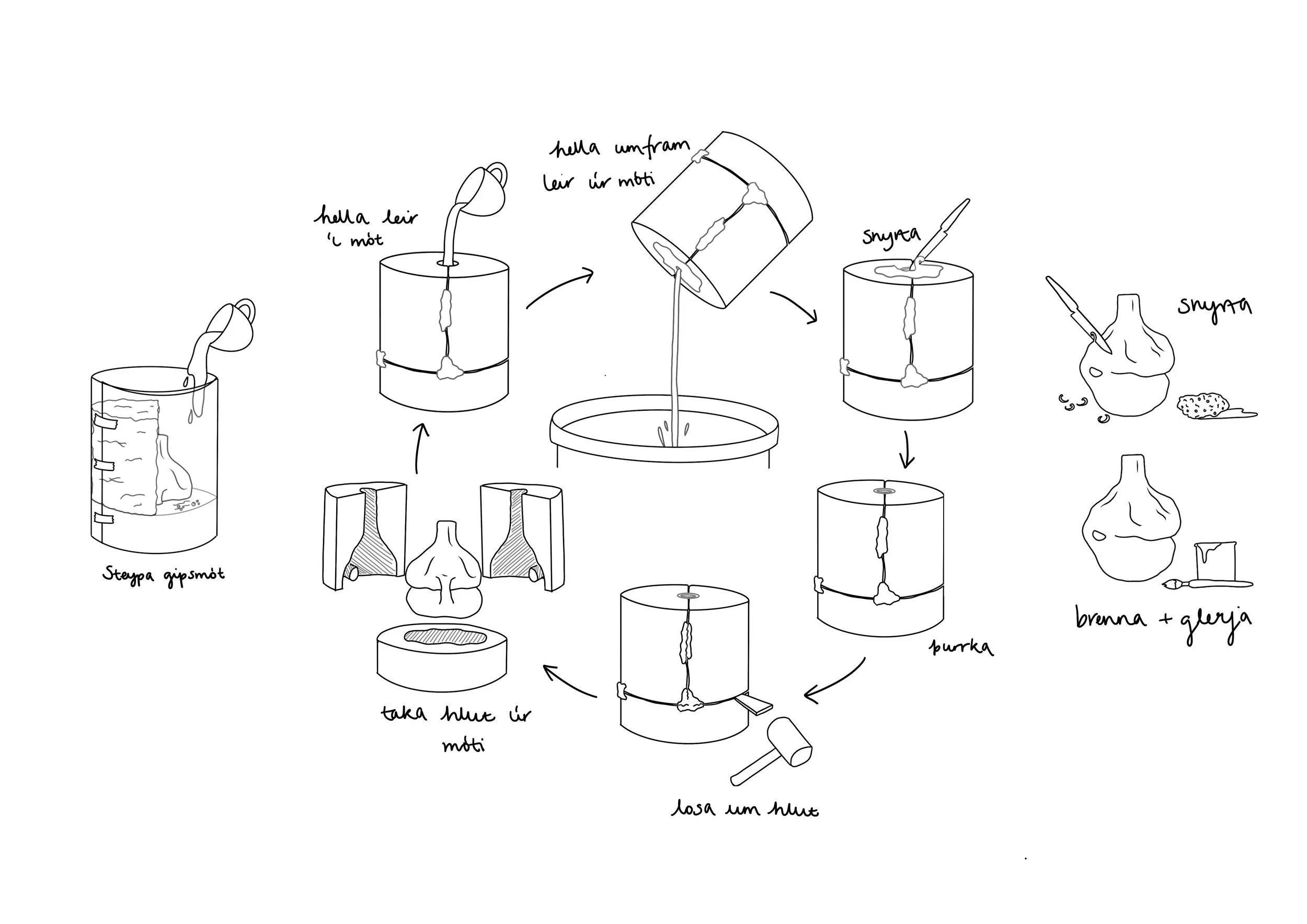 Upplýsingagrafík sýnir ferlið allt frá mótagerð til lokahlutar.